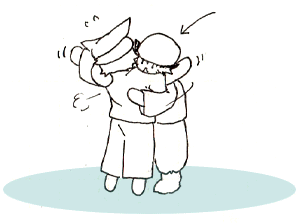 抱きつくリーダー