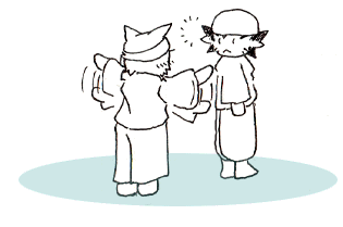 真似して両腕を広げて